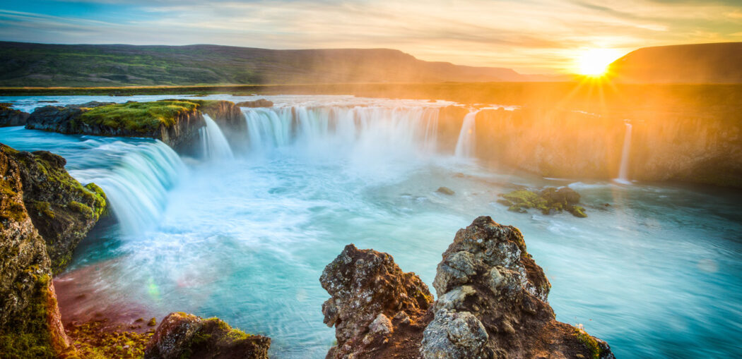 brodelnde Schlammquellen, Sümpfe und dampfende Erde gibt, zeigt uns die Natur ihre prächtigen Farben. Sie fahren weiter in Richtung Akureyri und halten am Goðafoss, dem „Wasserfall der Götter”. Zurückgelegte Strecke ca. 270 km.
